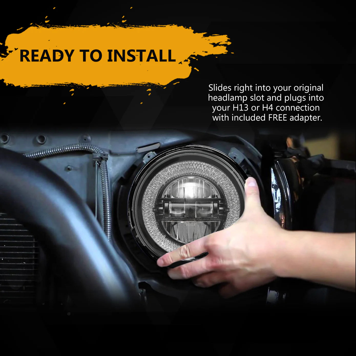 - Package Include: 2 x 9inch JL headlights + 1 x Installation manual + RGB Controller.