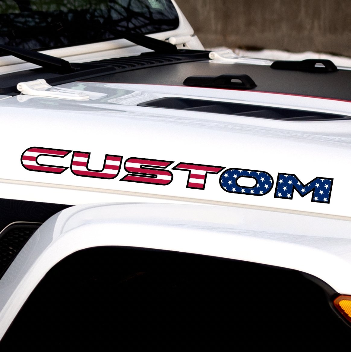Includes: (2) Custom Text Decals, one for each side of the hood
