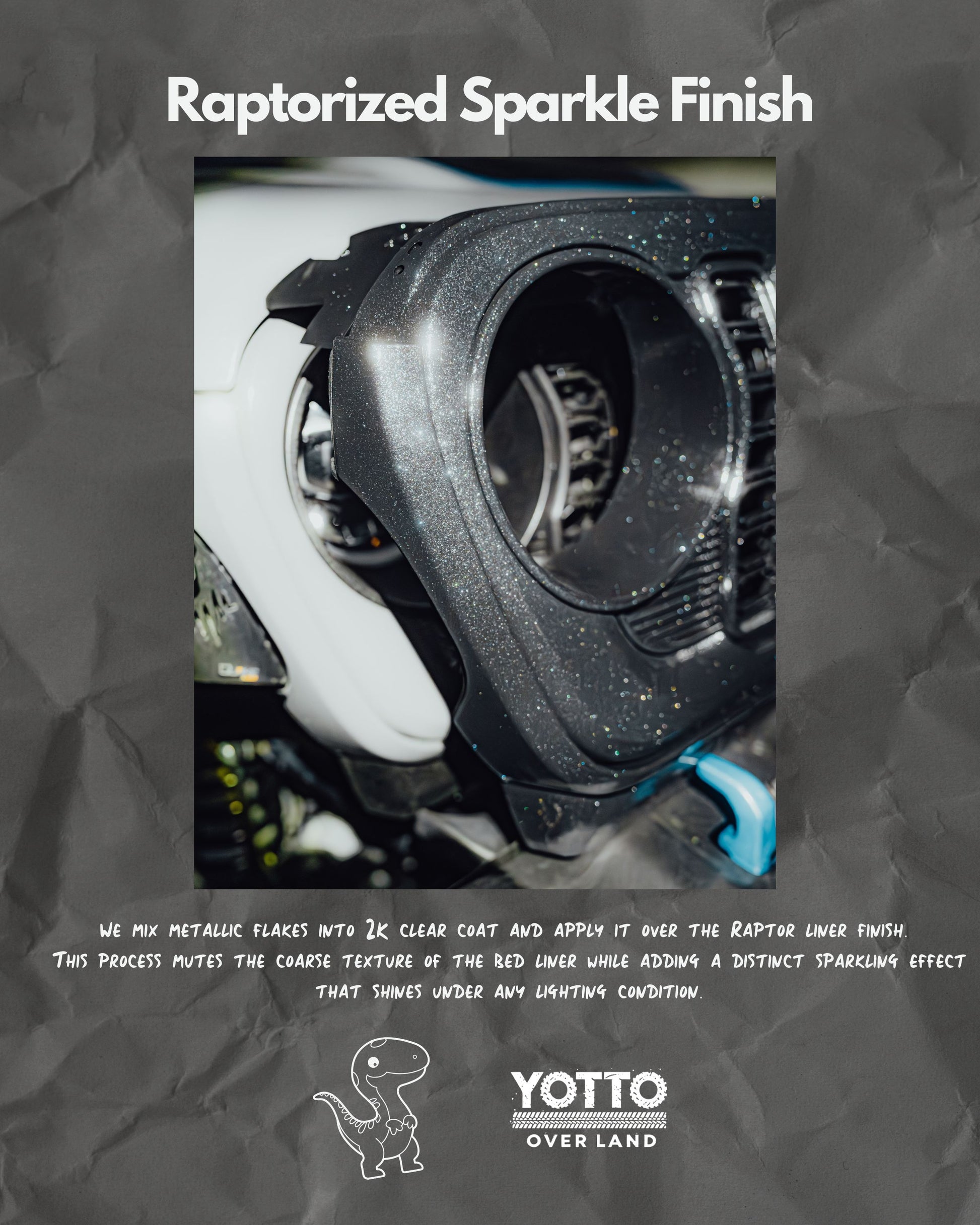 If you’re going for a blackout look but don’t want the plain black plastic finish, this is the way to do it. Our Armour Coating eliminates fading and delivers a premium, rugged appearance. The Raptor Liner formula provides long-lasting protection against washer chemicals, UV exposure, and scratches. Once applied, it creates a tough, off-road-inspired finish that stands up to the elements for years.