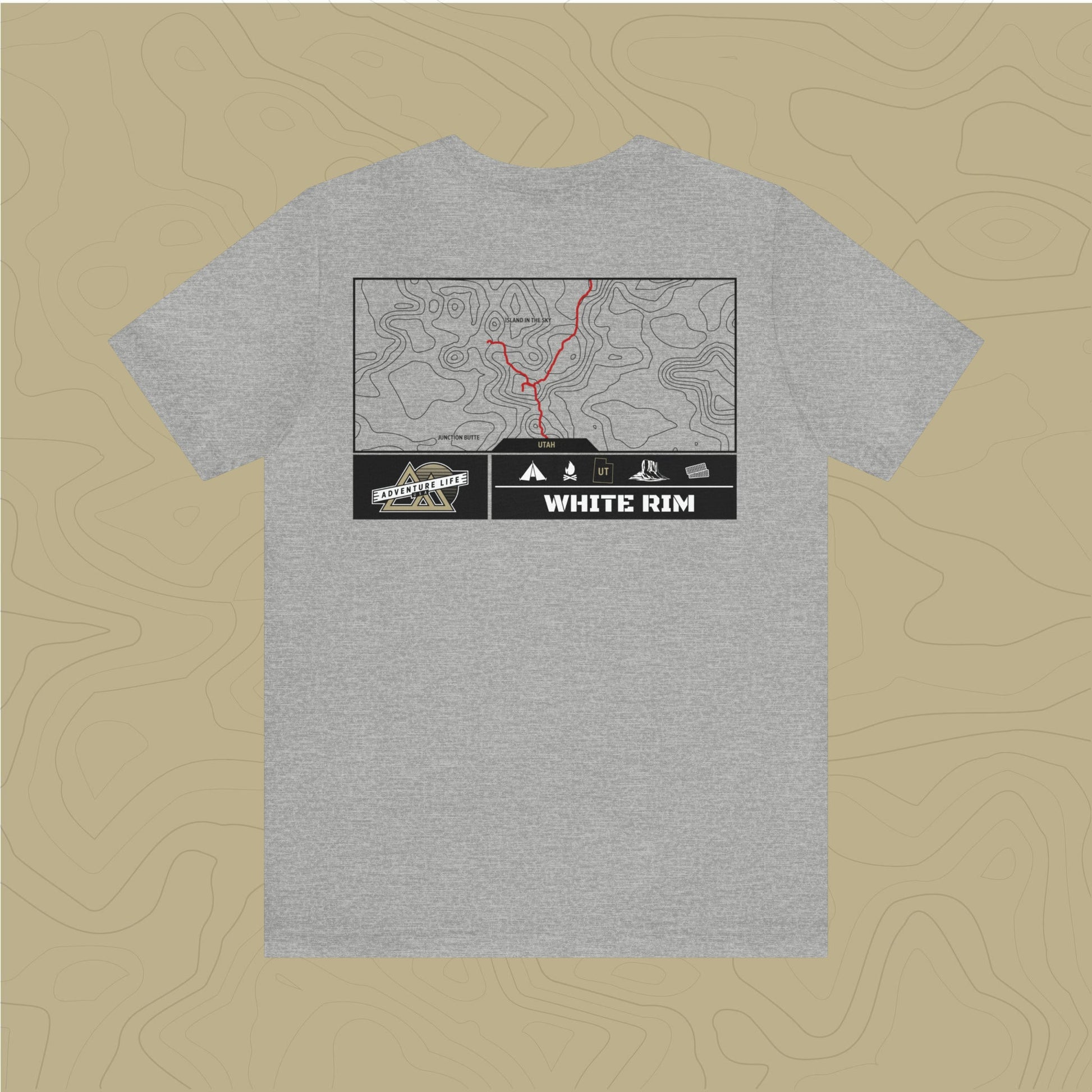 Embrace the adventure of the untamed White Rim Trail with out topographic map tee, a tribute to nature's rugged beauty.