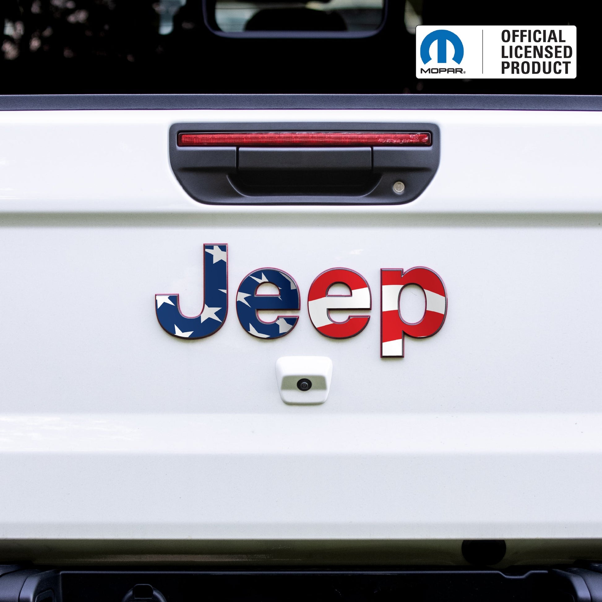 Upgrade your Jeep Gladiator with an official Mopar licensed emblem decal overlay set. These are vinyl decal stickers made to apply directly over your existing Jeep emblems — not a replacement or 3D badge. Made from high-quality, weatherproof vinyl, these overlays feature a bold Waving USA Flag design that is durable, UV resistant, and built to showcase your patriotism in style.