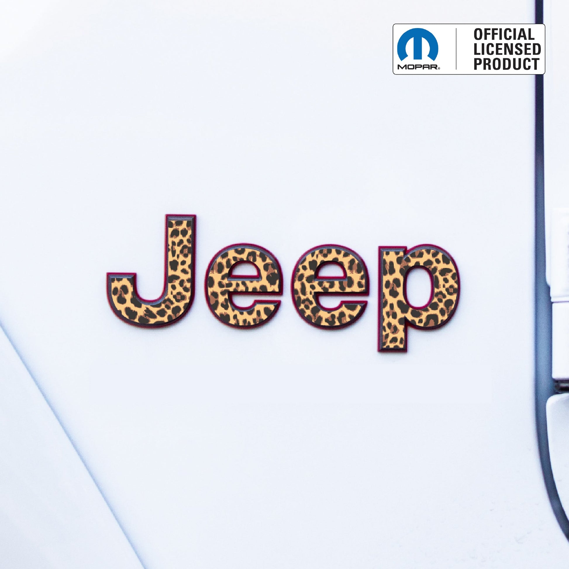 Add bold personality to your Jeep Wrangler with an official Mopar licensed “Jeep” emblem overlay decal set. These are vinyl decal stickers made to apply directly over your existing Jeep emblems — not replacement or 3D badges. Made from premium automotive-grade vinyl, these overlays feature multiple animal print options that let you give your Wrangler a fun, adventurous style while keeping a clean, factory-quality finish.