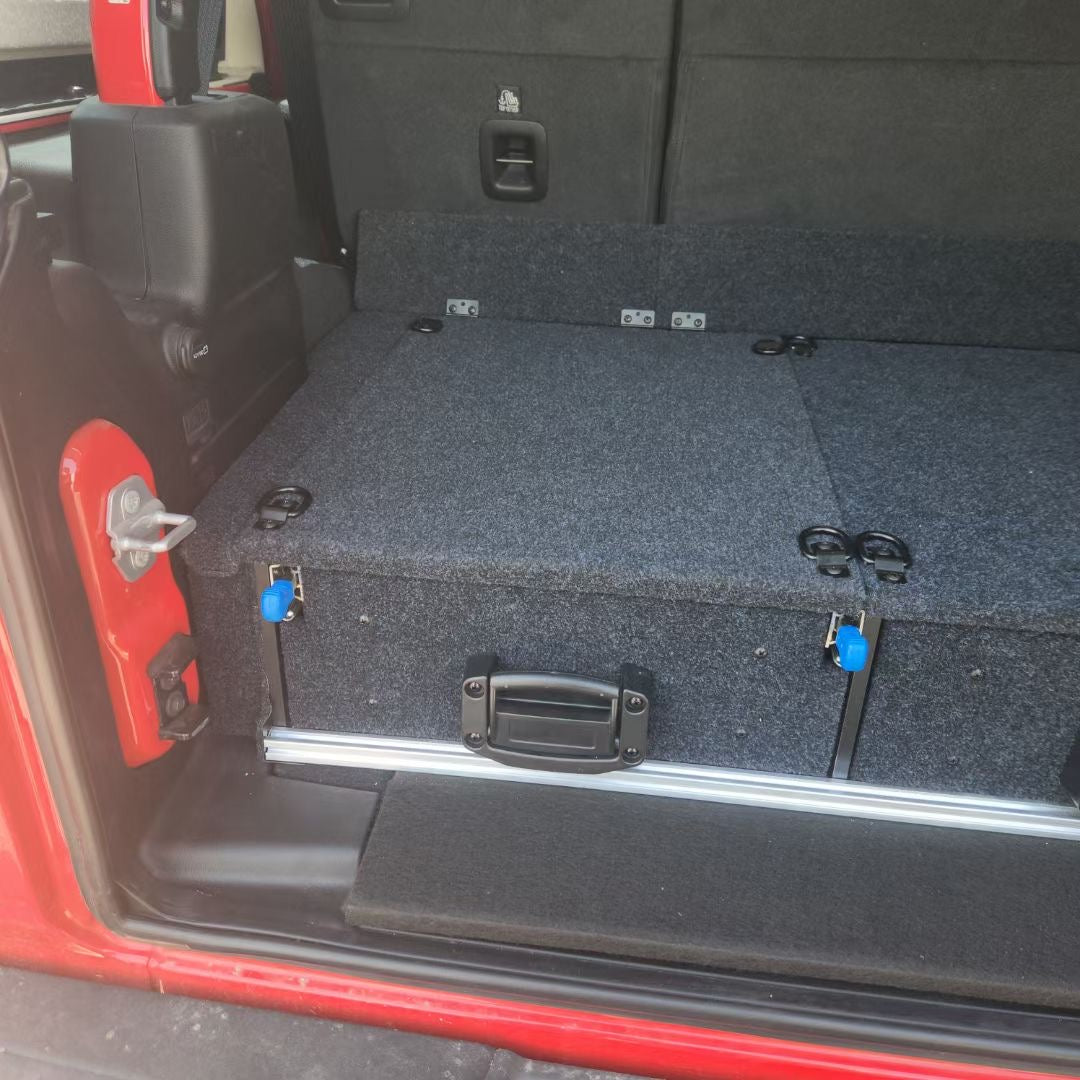 Take your overland game to the next level with our Aluminum Cargo Drawer System. The Perfect system for OCD Jeep overlanders, its combines functionality with swift access to your gear. Engineered for organization, security, and efficiency.